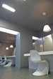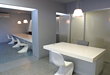 UNUTAR 1 PRAVOKUTNE PROSTORIJE, TRANSLUCENTNE PREGRADE OD LEKSANA I PRODAJNI PULTEVI OD KERROCKA POSTAVLJENI SU MEĐUSOBNO POD TAKVIM KUTEVIMA DA JE OMOGUĆENO KVALITETNO FORMIRANJE ČAK 6 PRODAJNIH RADNIH MJESTA I POMOĆNIH SADRŽAJA U SAMO 50 KVADRATA. |